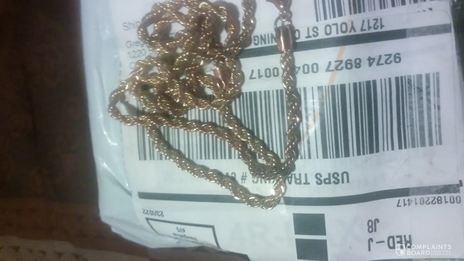 i purchased a necklace which Wish advertised as "18kt Italy Gold." After two days, the necklace turned copper-tone.