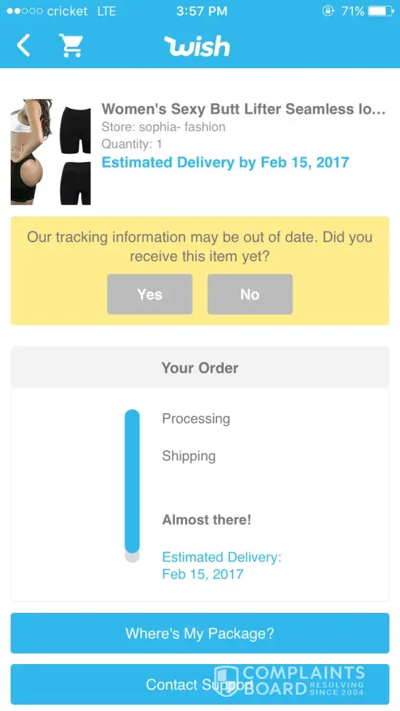 I made my order about a month and was supposed to receive my item last week but nothing arrived. I'm super nervous about this because I have no idea what to do. Everything that people said about Wish is true! There is no way to reach anyone and get help. All I can do is wait and hope, but I don't expect a happy end.