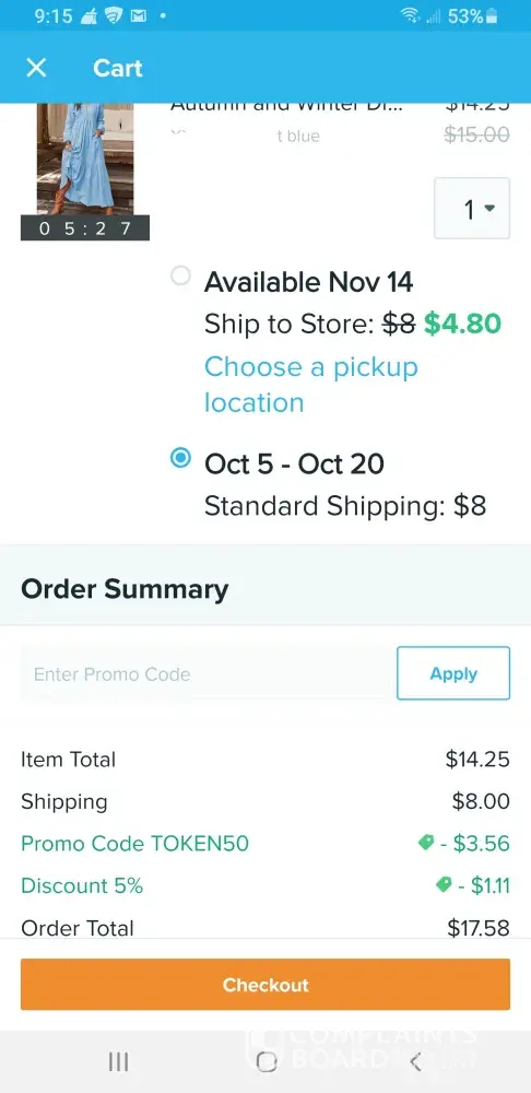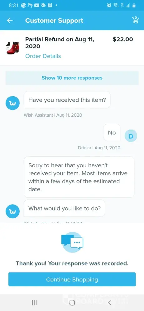 I have been shopping with Wish for a few years so recently when I attempted to check out on a few items in my cart, there were three payment methods to choose from includingCC, GooglyPay, and PayPal, however none of them worked as I continued to receive error messages. I contacted Wish support where I was informed to uninstal then reinstall the wish app. I did so including turning off and restarting my phone; problem solved however the promos in my cart were no longer there. I had screenshot the promo savings when I had the payment issue as well the errors, so now I sent them to Wish and asked them to fix my cart; they refused and continue to repeat their nonsense. Began researching the company online - they also go by Contextlogic Inc, but there are many complaints and negative reviews esp. thru the Better Business Bureau about the company. Sent a fax and email to hierarchy, and to regular Wish support; the only response wasc repetitive and that I did not check out in time. Extremely vexing since I spent much time navigating their check out complications at no fault of mine. I feel they should honor the two promos that were in my cart due to their problematic payment issues. ($3.56 and $1.11)