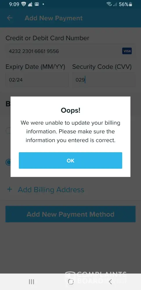 Verified customer This complaint was posted by a verified customer. Learn more