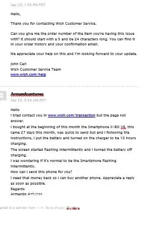 I inform you that I contacted the Portugal Chamber of Commerce and the Commercial Attaché of the Embassy of the United States in Portugal to give them knowledge of the company's online business procedures Wish.com and his bad Customer Support Service.