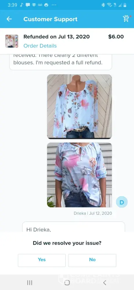 I purchased some blouses and what I received wasn't what I ordered. The blouses on the site appeared to be quality the blouses I received wasn't fit to line a dog cage. They said they'd refund me for 2 the other they asked to see a shipping label (which I can't find) to try to skim me out of a full refund for all 3. Which is ridiculous because as shown in the photo the shirts look the same just different color. I took a screen shot of the blouses on there site and the blouses I received. As you can see there's a big difference in quality.