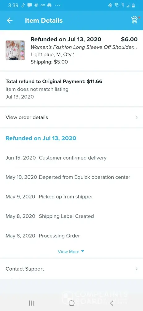 Ordered from Wish back in May 2020, items was tracked as still in China, the delivery window was forever being extended, contacted this company to ask for refund but they have an automated service that says because it is within the shipping window no refund can be given, eventually was given partial refund for the shipping and asked to contact support services after 11/07/2020 to obtain a full refund if items still not received. the item has never been received and now when I go onto the app, it basically states issue resolved refund issued, even though it was only the shipping refund and not the full amount. absolutely shocking company, no customer service at all and no real person to call and formally make an official complaint.
