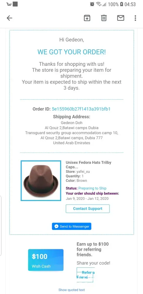 They spammed me earlier last year with tons of emails, despite my not having an account. I actually forgot about that and then did sign up and tried to purchase shoes. They took the money from my account, then refunded it. When I logged on my wish.com account to see what had happened, an automated message came up saying I needed to provide a picture of the payment and refund from my bank account statement. I sent them a screenshot (my account is online). Then customer service apologised and said they had removed my account as someone had created it by mistake? But it was me- this confusing message was partially written in Cyrillic- quite unhelpful. Then I explained I just wanted to make the purchase that I had already made, but they reversed. They still refused to place the order, requesting that I upload a picture of my ID! They said to include it with only my name and image shown, but this is still an absurd amount of information to ask for. I expect that sending them in my ID with my account numbers is not normal procedure. It seems they are on the brink of phishing and I'm being spammed by their emails again, despite unsubscribing three times.