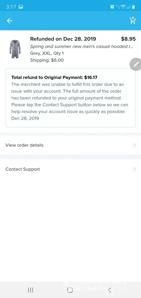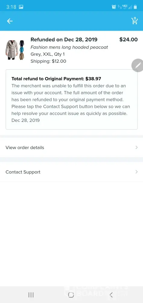 I placed several orders December 29th, I received the confirmation emails as well as a notification on my phone to say there were 3 payments taken from my card. Everything good, wrong! The next day I received a message there was a problem with my payment and my orders had been cancelled. I sent an email telling them I was very angry because the money had been taken for the items and I wanted it resolved! I received 3 messages from wish for each of the orders I had placed saying the funds had been refunded to me and I could place my orders again. I verified that the funds had indeed been refunded and reordered the items which were still available. When I tried to place the order I received a form on screen to enter new payment details which I did and tried to place an order with the message oops there is a problem with your user account and to go to wish.com /payment-issue. I am unable to purchase the items. They want a copy of my bank statement. Not happening. Now frozen my two cards registered to wish as they once took funds for an article and a couple of weeks later took it again. It wasn't much but it was the action. Can this be resolved!