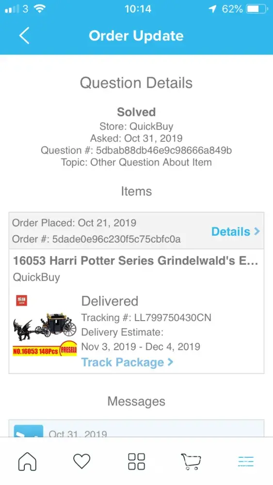 ##- Please type your reply above this line -## You have a new message from the Wish Support team relating to ([protected]). Read the full message and reply directly from the Wish app. To add additional comments, reply to this email. Tracy L G Oct 31, 12:08 PDT