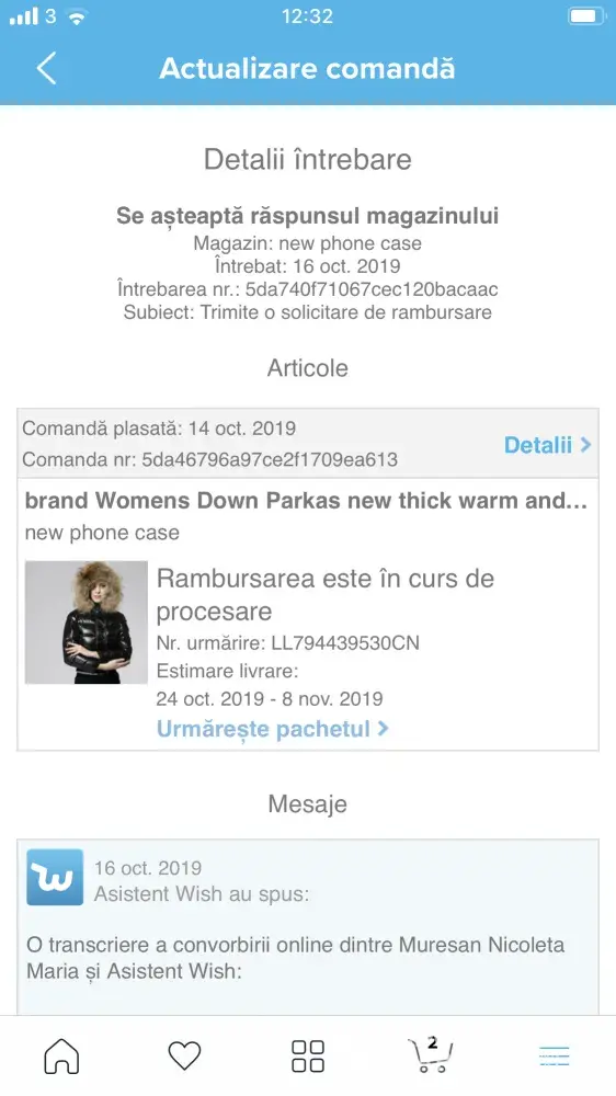 Order no: 5da46796a97ce2f1709ea613 I ordered a black jacket But it was sent to me a jacket other model than the one ordered yellow. I specified in the messages sent by me that I want to return the product because it is not the one I ordered!customer service do not want to give me a ticket for returning the product! I will ask the police for help in