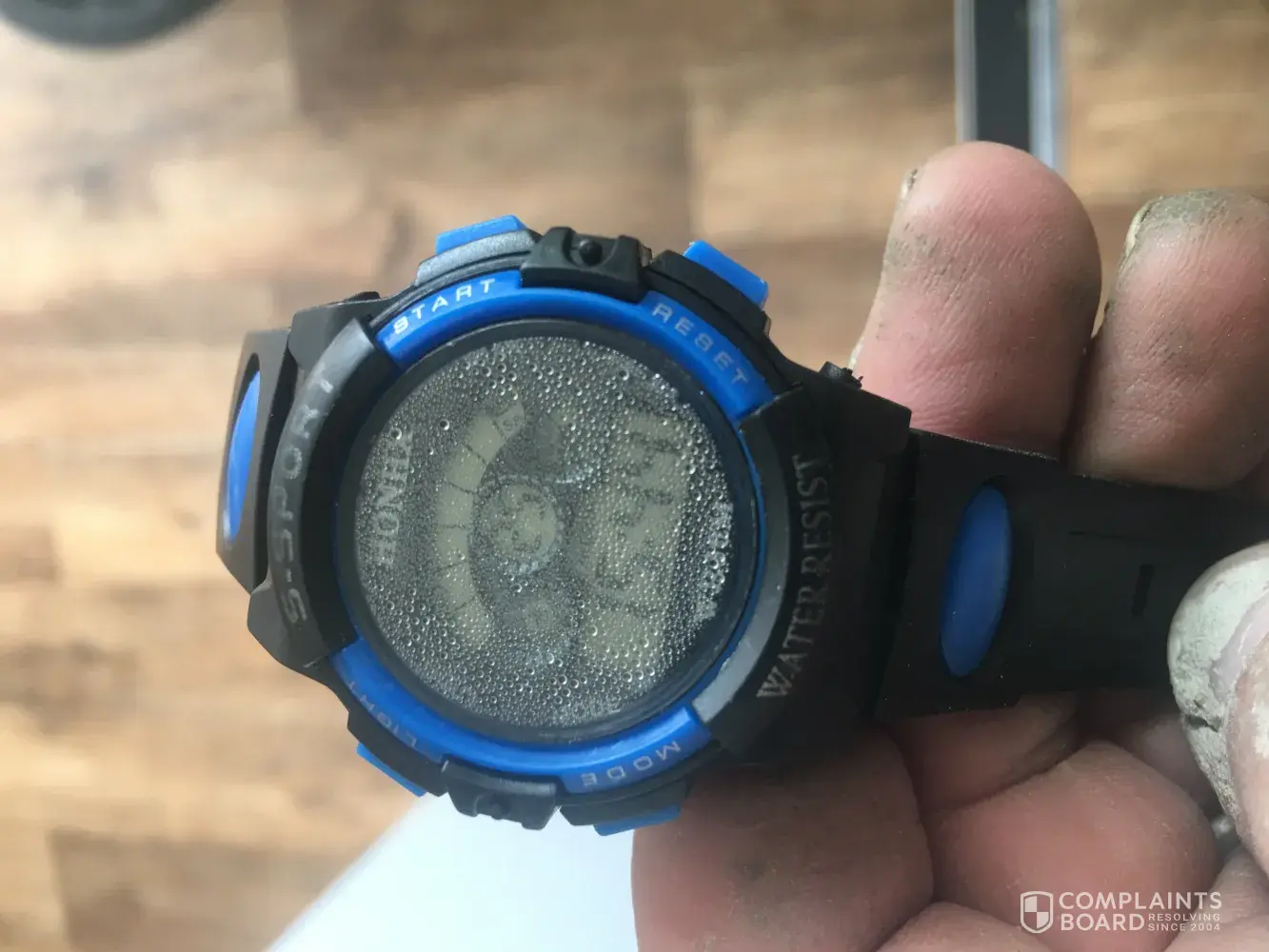 Helloing have just been delivered a boys watch supposed to be water resistant he went out in a brief shower and it's misty on the inside