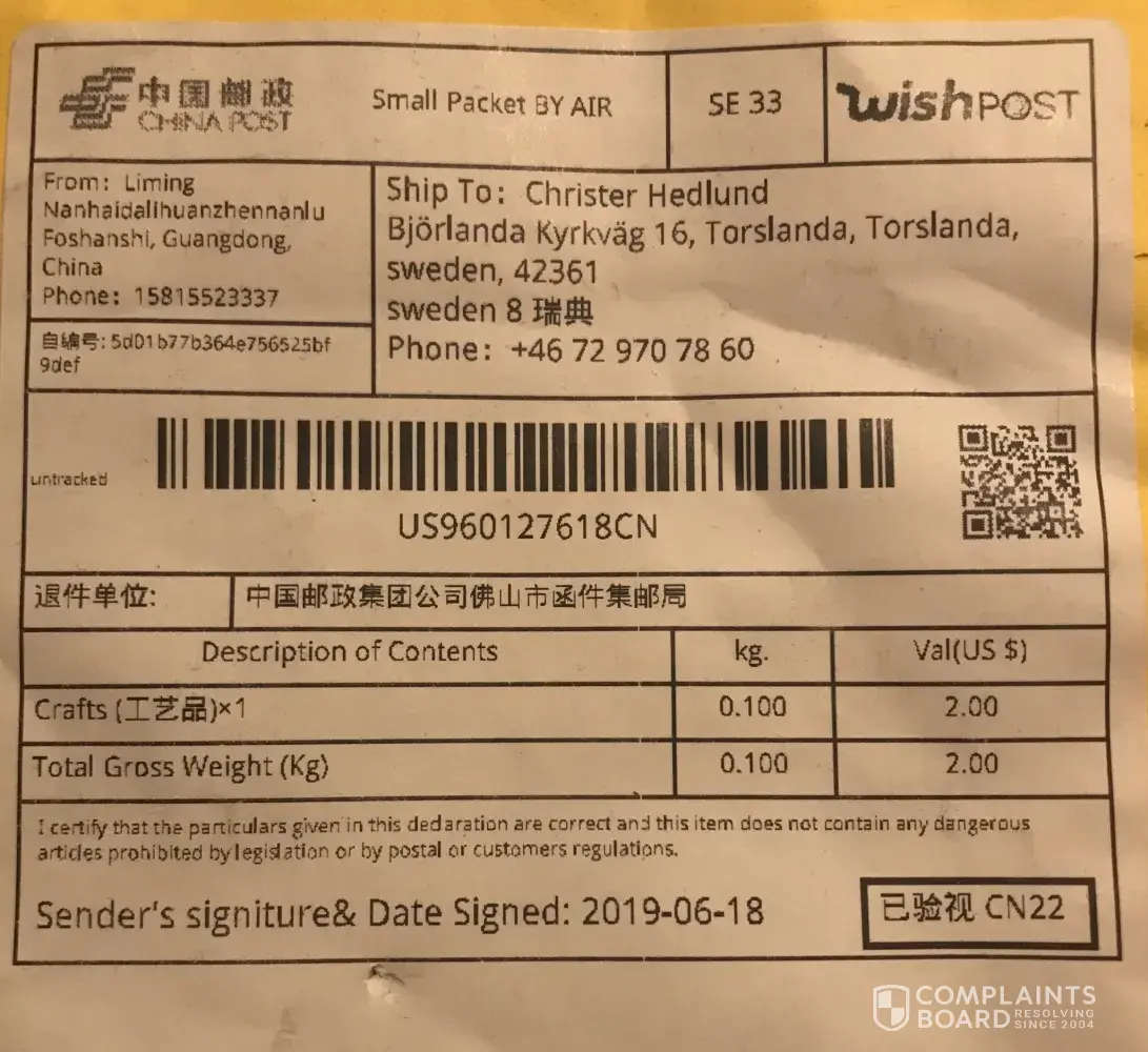 Wish tracking no: us960127618cn