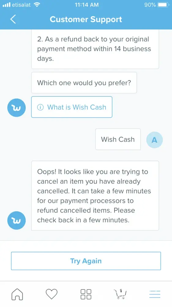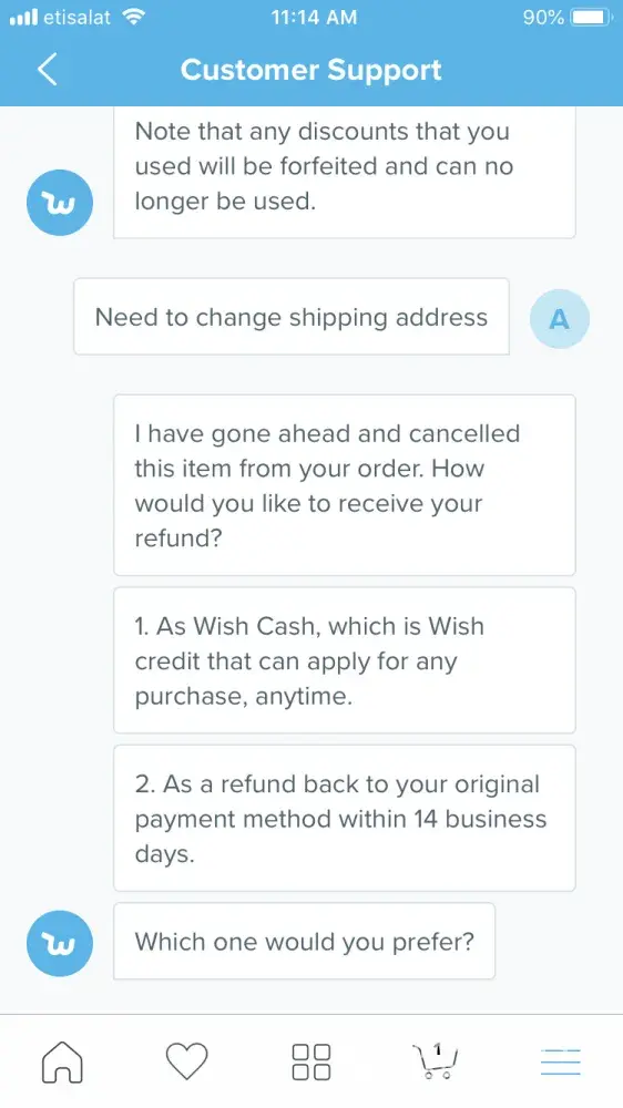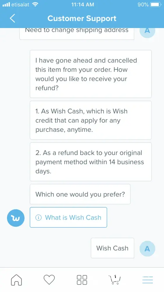 Wish customer support