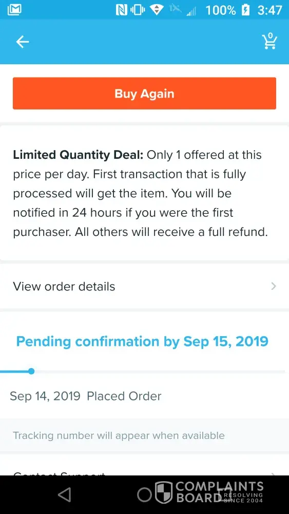 Wish failure to fulfil orders after receiving confirmation