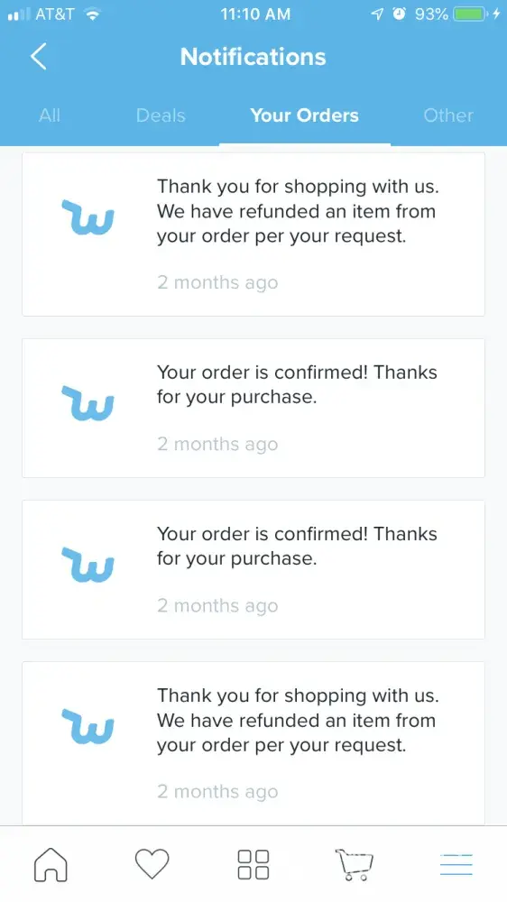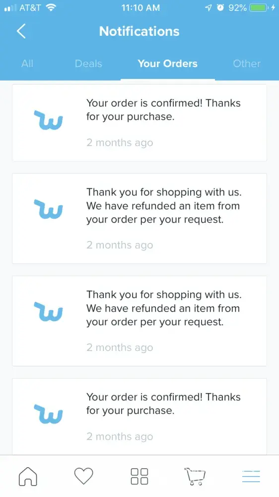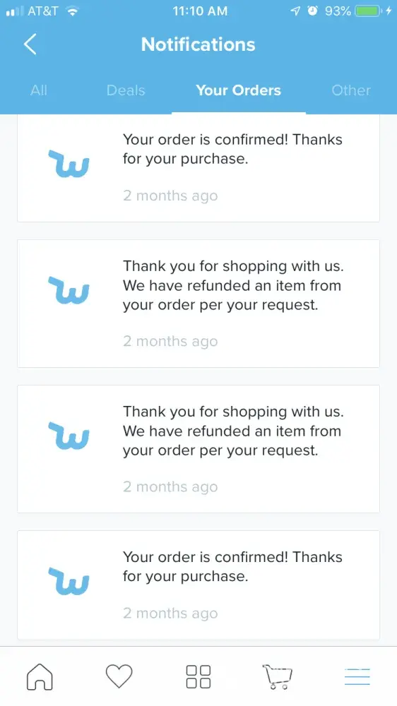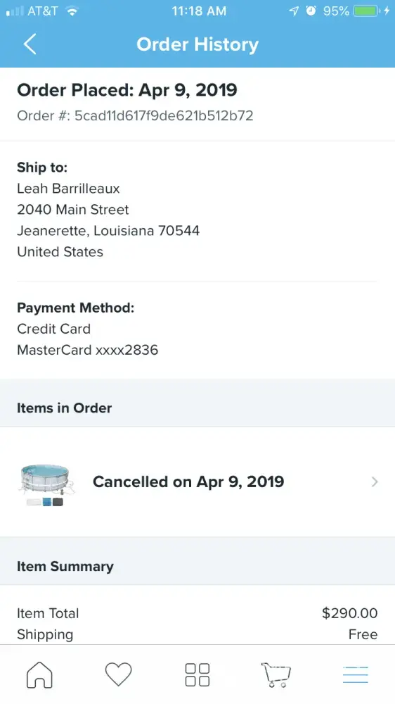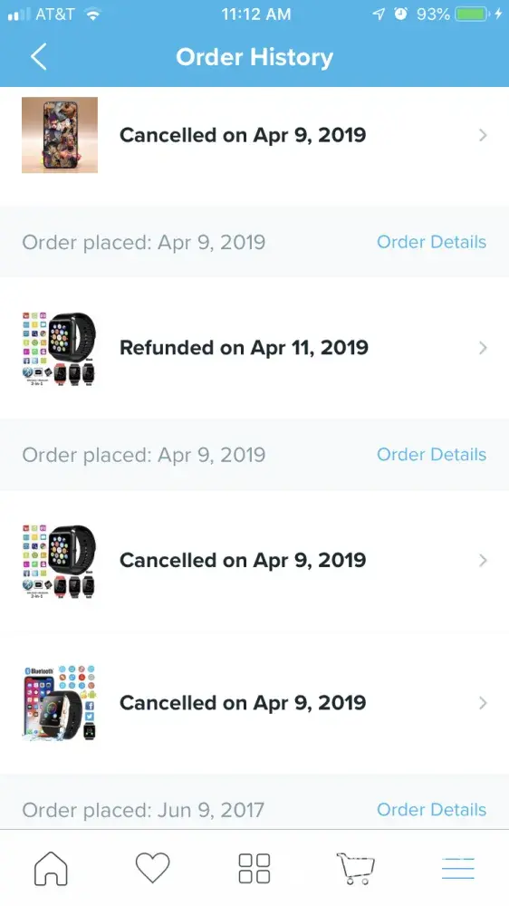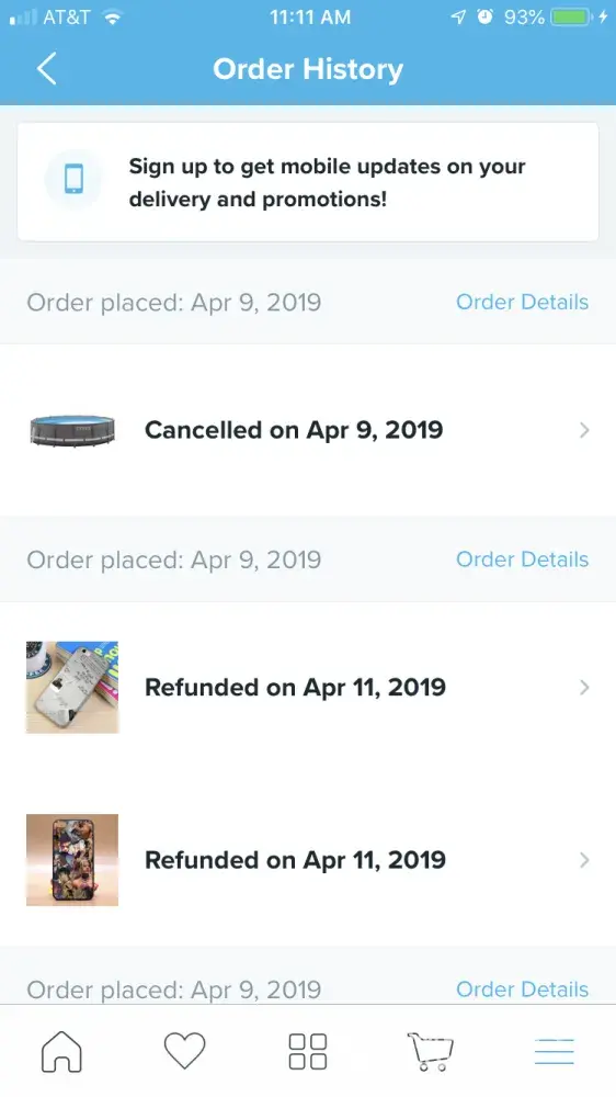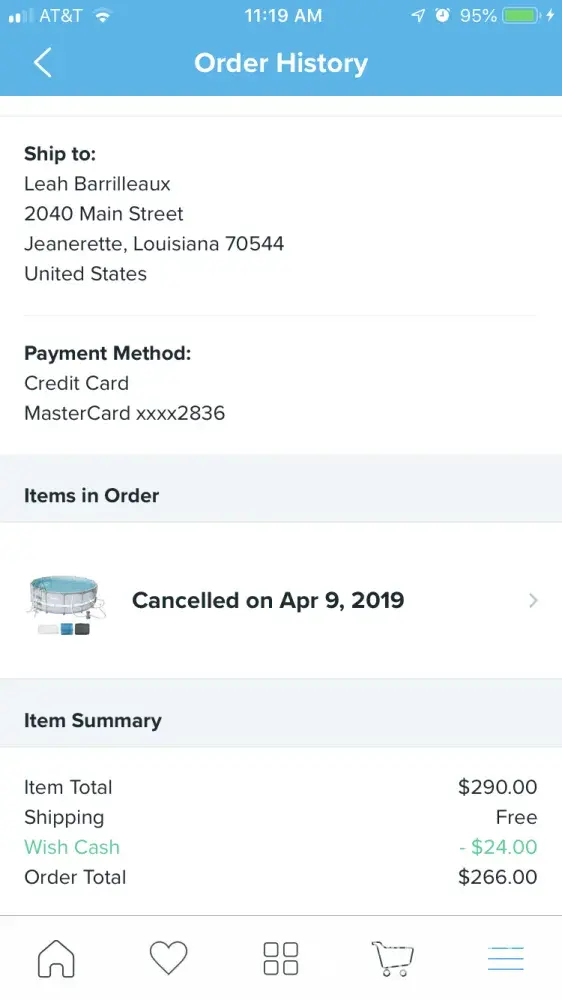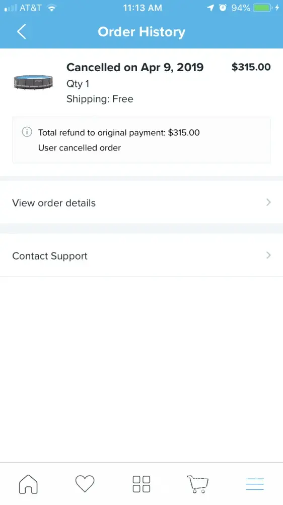 Wish order canceled and refunded