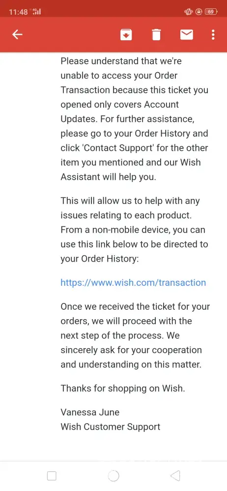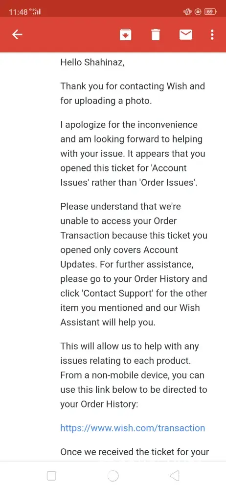 Wish wish customer service