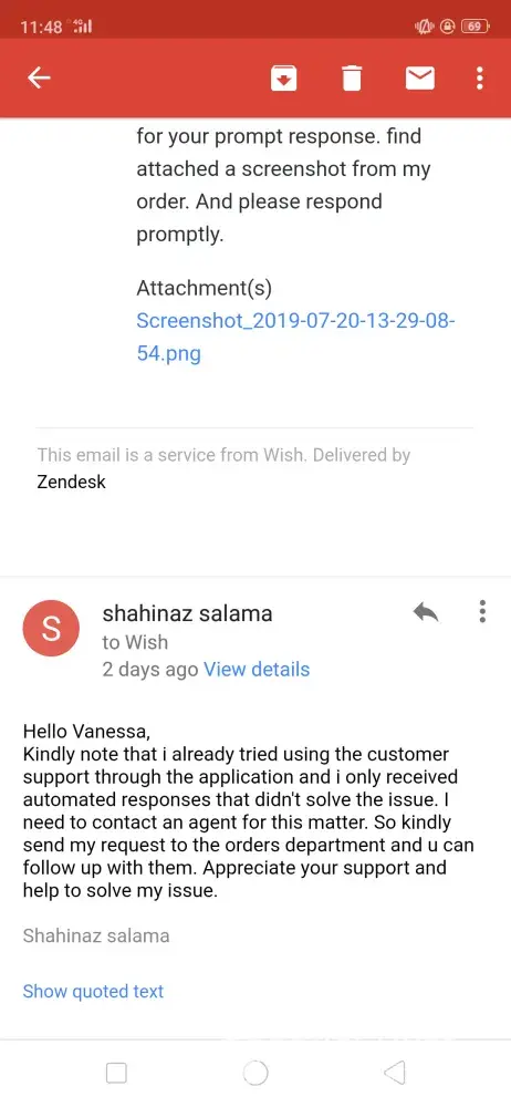 This email is a service from Wish. Delivered by Zendesk"