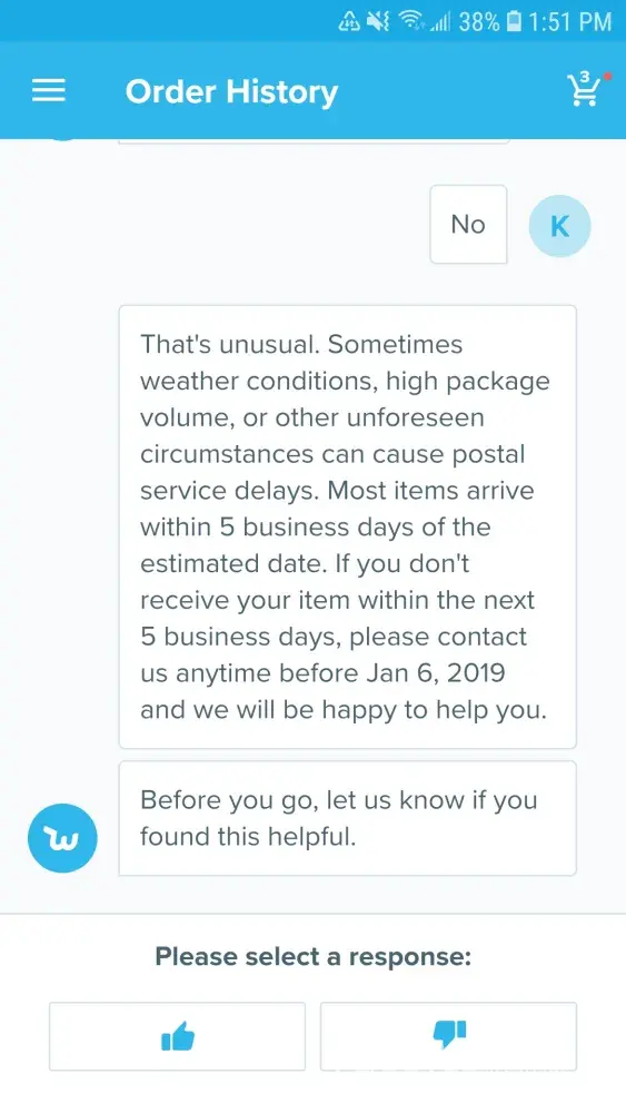 I ordered alot of items back in sept. I never recieved most of them. Ive been going around and around with wish. They just give me the same old [censored]. Also I never recieved any refunds from them or the 64.00 they took out of my account... I sent them every bank state ment. It done me no good at all. So now I have contacted the attorney general... Wish is a terrible company. I hope they get shut down