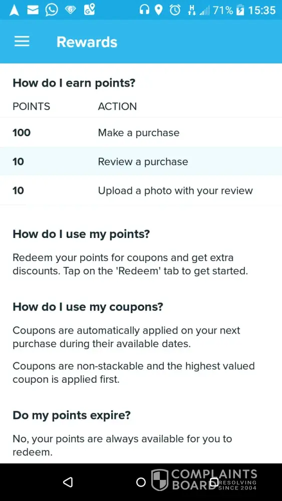 Now the fun part I got in touch with the customer service team, explaining what had happened and just asked for the gift card and wish points to be returned to my account. I received little more than a basic template email in reply referencing promotions. I mailed back my displease and someone different replied with the same template reply. And so it went on in that vein differentvperson same reply once or twice the same person would reply rsending screen shot. Not reading previous correspondence as the New person asks for details of TJECSAME things as like the 35/40 customer staff