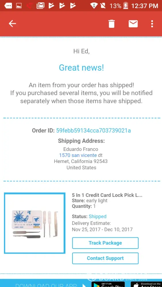 Where is my order package ? Its passed dew ! Here is my confirmation number 59febb59134cca703739021A my email address is [protected]@gmail.com I tried calling your 1-800 number and it has no live operator . Im very disappointed on wish