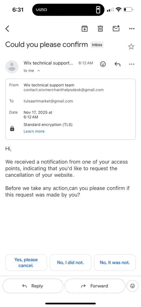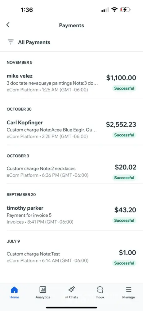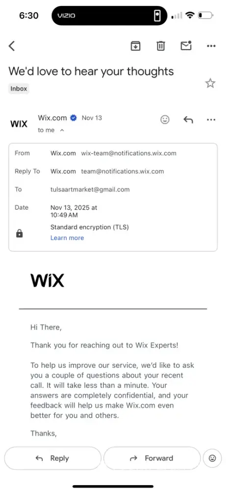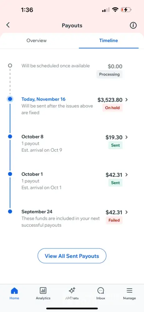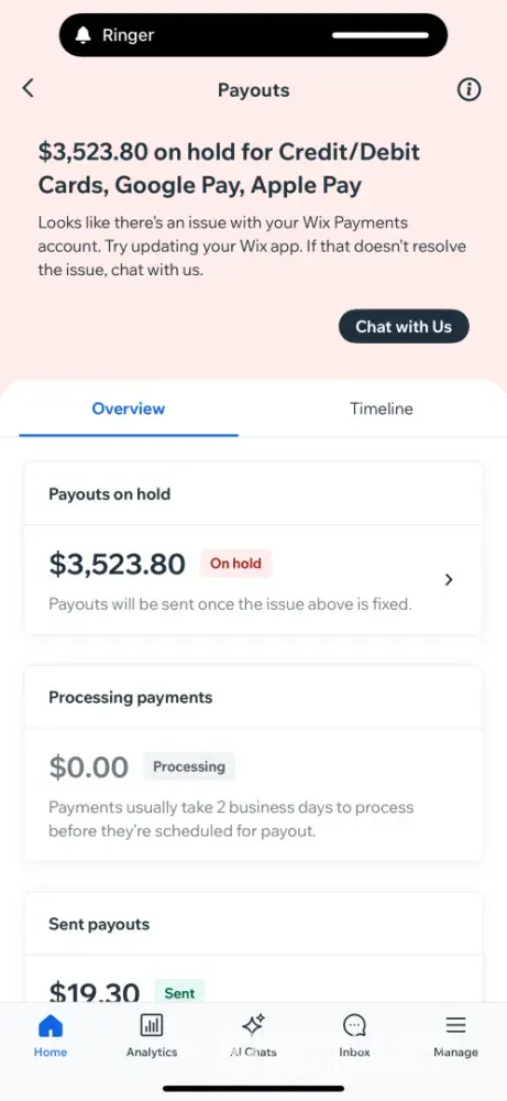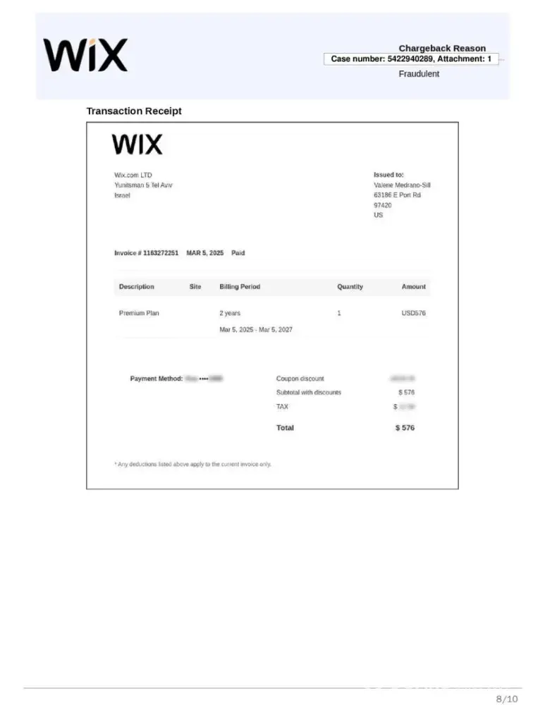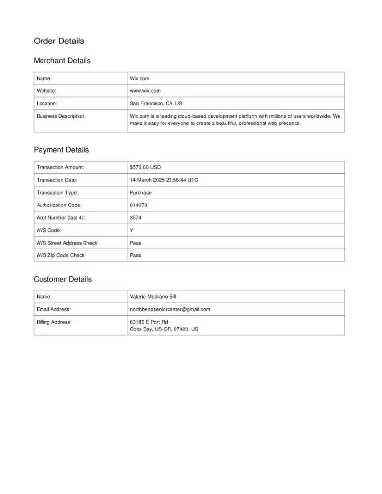 On May 26th, 2023, I made a sale for $8500 plus tax, paid by American Express. Everything seemed fine at first, but soon after the payment was made, I received an email from Wix saying that I needed to update my bank information. This was really confusing to me, because my bank information hadn't changed in 5 years. But I figured it was just a mistake, so I called Wix to try to sort it out.