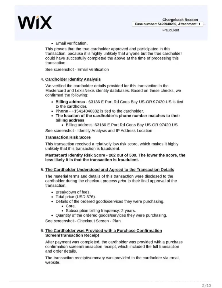 WIX billed my CREDIT ONE BANK (COB) credit card for $576 in March 2025. The charge was for a company I had worked for and have parted ways since June 2023. When I set the account up for my then employer, I selected “non-renew.” 03/15/2025, I disputed the charge with CREDIT ONE BANK, Claim #250315000473C. I emailed COB a copy of my termination...