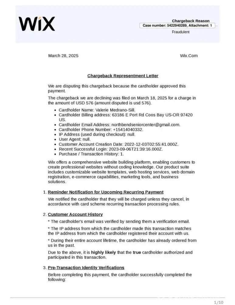 Wix.com Customer Support Wix.com Ltd. Subject: Formal Complaint and Request for Immediate Refund of Unauthorized Charge ($1,116.00) To Whom It May Concern, I am writing to formally dispute and request an immediate refund for an unauthorized charge of $1,116.00 that Wix debited from my account on December 14. At no point did I authorize this renewal, nor...