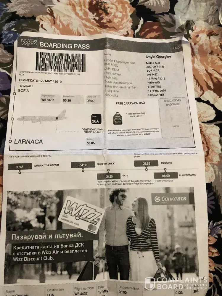 Hello there today on 17 of may 2019 i have missed my flight from Sofia to Larnaca, i dont know who fault it was but that gonna cost me quite much. So let me explain what happens. The flight is at 6 oclok in the morning at 20 minutes to 5 which means 4;40 i got checked out and the guy told me gate number 3, so i went there and waited my turn to go on the gates. There was a huge amount of peoples because of the another flights and i couldnt reach the way going to my gate, so once i get to the gate it was CLOSED, then i went back to the border police and asked them why is it closed and they have said you miss the flight. There was another 2 or 3 guys with the same problem as me, so i went to the wizz air and asked them whats going on they said go to the tickets office and speak with them, we went there and the lady said its not our fault, asked her who mistake it was she said the security of the airport, so i went to ask the guys who make checkouts and they said its not their fault but wizzair. So all in all i have lost my ticked, i already bought a new one for 19 of may on sunday and i miss alot of money for this 3 days, so my question is if there is something you guys can do for me as a compensation for this problems? I upload my board card so you can see the details and i will wait for ur answer please.