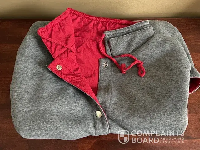 The item ordered on 10/800/2 was a velour plum bed jacket. The item that arrived on 10/21/23 was a gray and red jacket. see attached photo, We contacted customer service on 10/21/23 and was given a run around. The item was final sale with no return. I understand that, but when the item received was the wrong item a refund should be provided.
