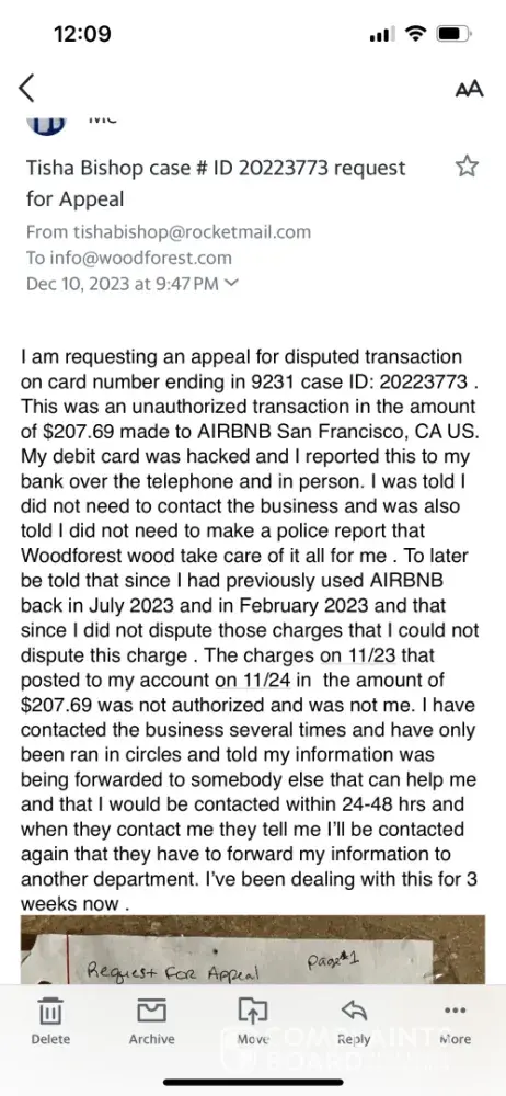 I found a second Dispute on June 27 the first one was denied but somehow the merchant was able to give some money back supposedly and not all some transaction was approved some transactions or it’s not which I don’t understand the second Dispute I went into the office to file but unfortunately, the branch manager was unable to submit the dispute. I had to do it myself as I was told also, speaking to several people ever one say it different one I was told that none of my money was returned against someone else say some words, and some was not I do not think I had to do the second Dispute but I did had to do myself. I have suffered. My children has suffered. We have gone without we had to borrow any money is money no matter how much it is. I have called at least once twice a week everyone say something different yet have heard anything over a month I second Dispute I did not authorize the transaction. The merchant reached out to me asking me did I make the purchase? I said no they said, and when it was gonna be refunded, but it has received anything I heard from Woodforest and BANK , stressful, aggravating, and so unprofessional I have attached where the merchant reached out to me and what I responded again this is been going on since April 25