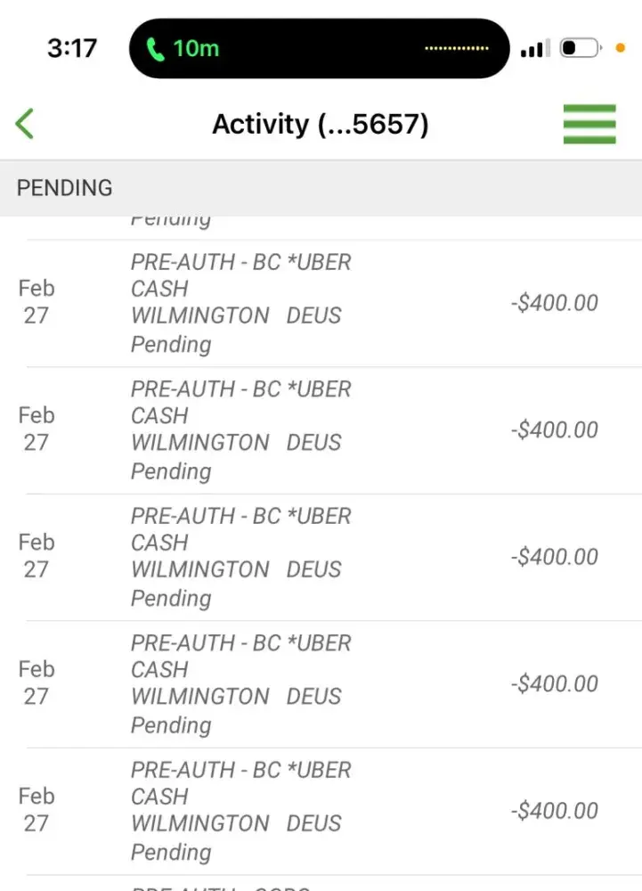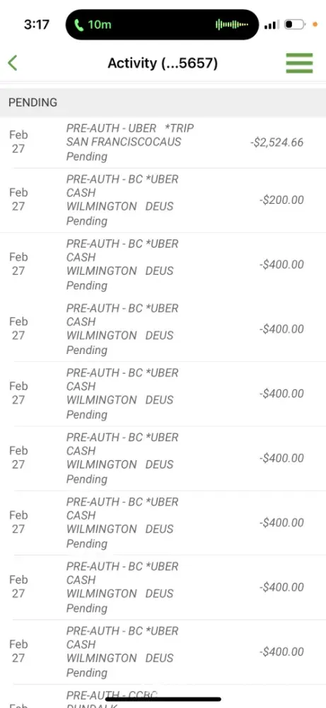 My Woodforest bank acct was able to be charged 9 unauthorized charges w/o EVER notifying me of fraud alerts so I could at least state if the charges were from me or not. How did Woodforest bank not catch 7 $400 charges 1 $200, & 1 $2524.66 totaling $5524.66 which has me distraught, my rent is due by the 5th. I live in MD & it shows Uber was used in CA, ...