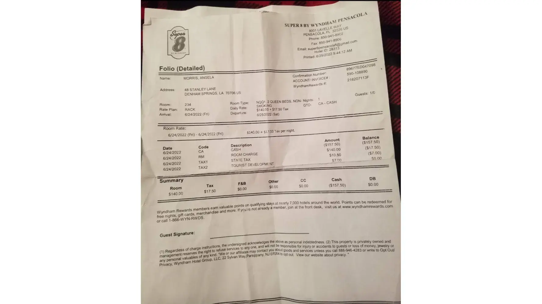 My niece Arlisa Jackson/Salsiberry booked a room for the weekend of 625/2022 for Angela and Rhonda Morris. 2 different rooms. For accommodations of 2 beds. Well when we arrived at the hotel and checked in there were only 1bed im the room. Also the room was dirty. We asked for a refund because they didn't have any more rooms available. They refused to refund my moneu back Angela Morris because i paid with cash. They said the manager Chris will be back that Monday. I spoke to Chris on several occasions and he keeps giving me the round around. My next option is to file this complaint before o take it further. My sister Rhonda Morris was refunded but I haven't received my refund yet. I'm sending in the documents for that day alone with other hotels we had to get that night.