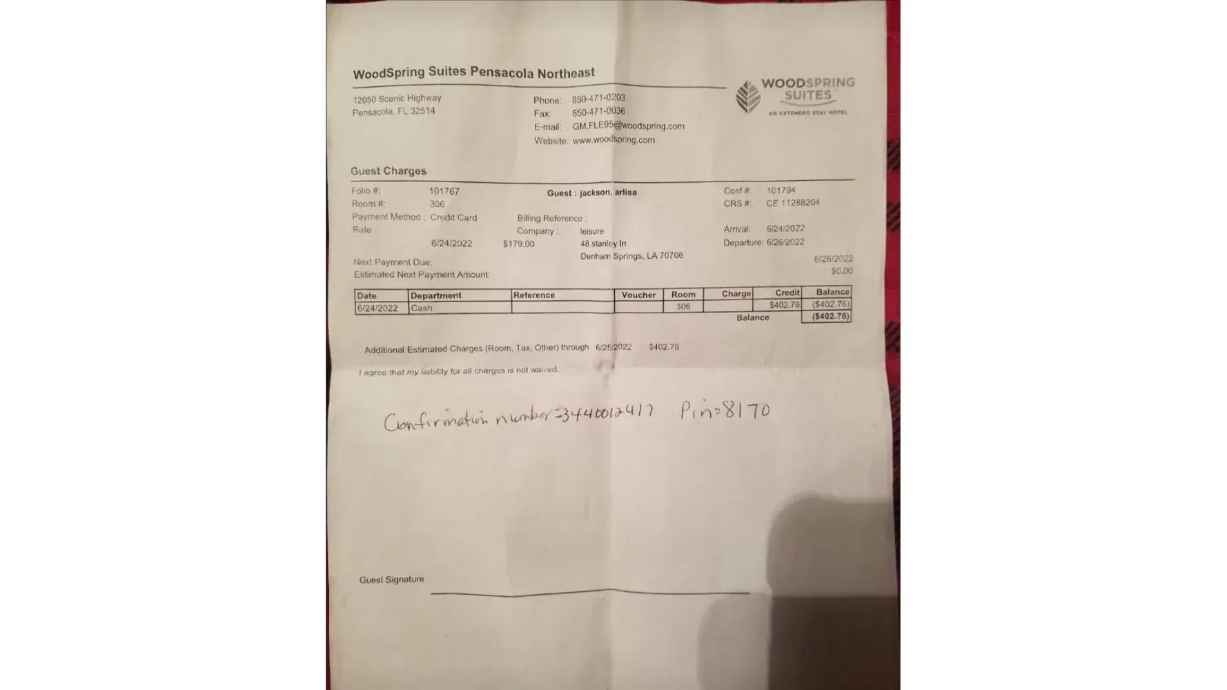 My Husband and I rented a room #106 at the Wood Spring motel in Columbus, Ohio July 16, 2022-September 10, 2022. We were transitioning from Kentucky to Ohio. They charged us the first night, I paid cash, we than stayed in the same room the rest of the time. They never changed rooms due to not having another one available. The first month I paid cash the...