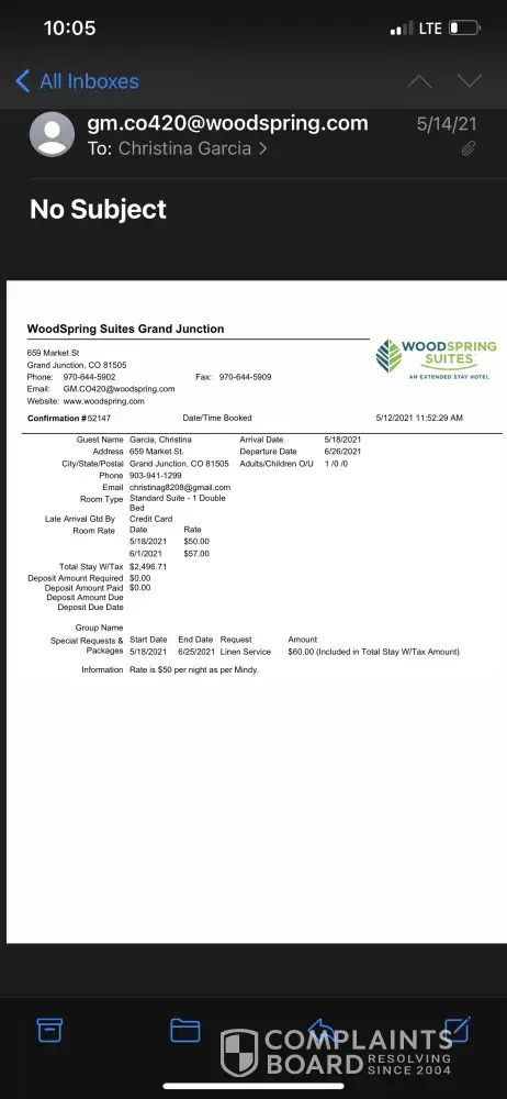 NEVER STAYED AT THIS HOTEL BECAUSE IT WAS FILTY. FROM: Lemuel N King 2471 W Edgewater Way, #1050 Chandler, AZ 85248 TO: WoodSpring Suites Colton 2050 West Valley Road Colton, CA, 92324 DATE: OCTOBER 19, 2020 I was emailed one of your surveys regarding my stay that I did not do; and there was no space for what was needed to be said on the survey. I...