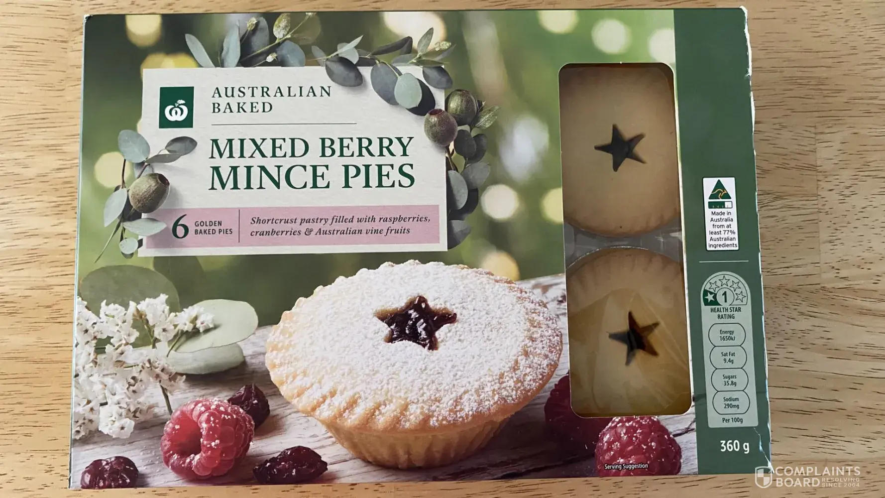 Read full complaintWoolworths home brand: australian baked: mixed berry mince pies (6 pkt 360g golden baked pies)