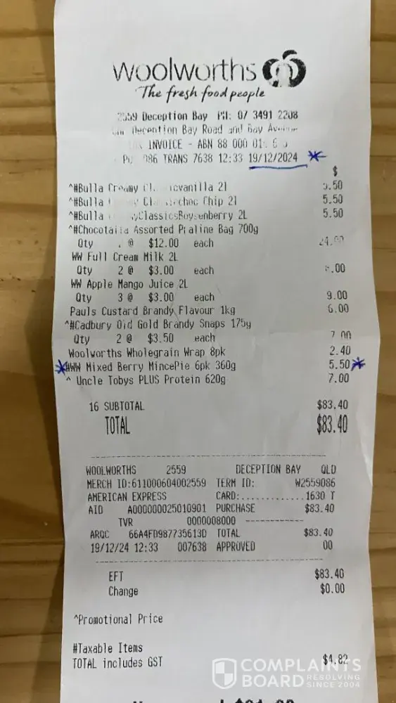 On Thursday, 19 December 2024, I purchased the above product, Woolworths Home Brand: Australian Baked: Mixed Berry Mince Pies (6 Pkt 360g Golden Baked Pies) for $5.50, at Woolworths Deception Bay, Marketplace, Corner of Deception Bay Road and Bay Avenue, Deception Bay. In my haste, I foolishly just looked at the picture on the front of the box which clearly...
