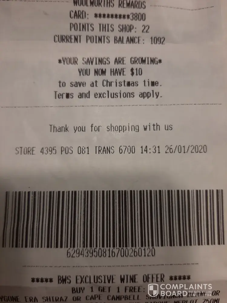 Woolworths/Dan Murphy own me compensation for this disgraceful episode - offered me $50 which i rejected asking for a bottle of Lagavulin - 16 years which I buy from them. Rejected.