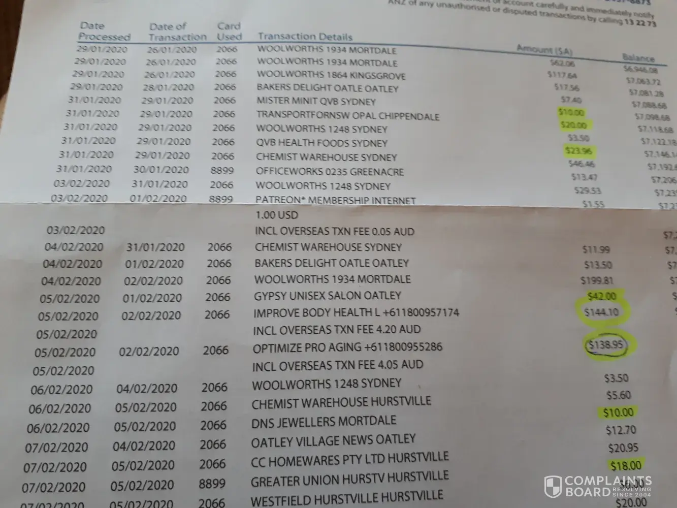 At no time did I authorise the payments of $144.10 & $138.95 for the products at a total of $283.05 which now both appear on my current Vias Card Bill.
