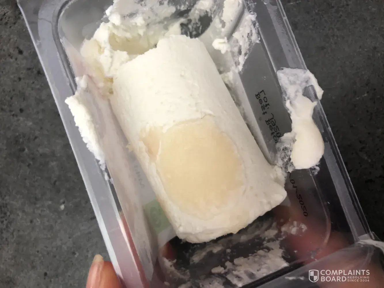 I purchased a goats cheese from Woolworths Gungahlin on the 2 Nov 2019 and have opened it today (3 Nov) and noticed it tasted off. I found what is pictured below which is not what goats cheese should look like. I have already consumed some of it in an omelet and at least like a refund for this item and this is not the quality I am used to receiving with Woolworths.
