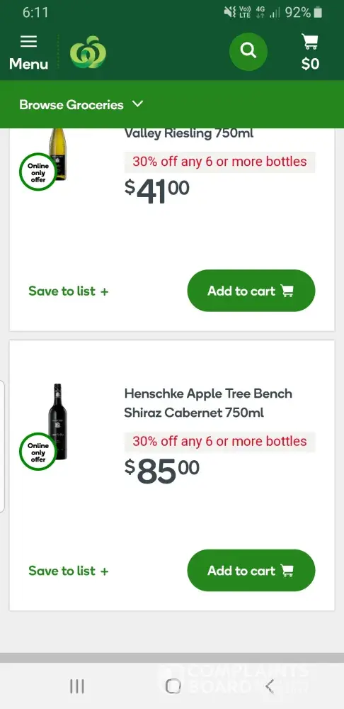 Recent online shopping promotion. 30% off any 6 or more selected wine. Qualified for this offer but was charged full price. Goods purchased on Saturday 17th August 2019, with pick up next day. Invoice also showed full price. Contacted online customer service at 4.35pm spoke to Lisa who escalated my complaint to her supervisor by transferring my call. On hold for 25mins & 16 secs. Ended the call & called back same day at 5.29pm. Eventually transferred to George a Team Leader who came across rude, condescending & appeared not to believe me that there website was promoting 30% off wine. Luckily I took mobile phone screen shots of each wine I bought with the notation "30% off any 6 or more bottles" underneath the wine name. I was asked to provide that evidence, so I did immediately. Around an hour later, I received a reply with an apology that the wine offer was not showing on their end. Seems highly dubious. I don't know what website is on their end. I assumed www.woolworths.com.au is the same anywhere in the world. Along with the apology, I received my refund for the 30% off difference as a STORE CREDIT, with the provision that I spend more than $50. No further compensation was given considering in my opinion, Woolworths either had an online ordering issue or was acting deceptive in their offer. I also requested that I be refunded not as a store credit, because I should not have been overcharged in the first instance. A store credit means I am forced to spend that money Woolworths either inadvertently or deceptively took from me initially. Therefore,  I decided to call back online the next day to escalate my complaint beyond George. At 3.07pm I spoke to Tom who I advised that I received George's email yesterday & that I was not satisfied with his resolution to my original complaint, & that I would like to escalate this matter further along the management line. I was placed on hold. A couple of minutes later, Tom returned to advise me that George was in a meeting. He then asked if I received his email response. At that stage I was laughing internally & could not believe he asked that question. So I asked Tom if he had been listening to what I have been saying to him from the time he answered my call. His response was "you don't have to be rude". I reminded Tom that this call was being recorded & it appears he did not listen when I said I was calling because of the email response from George. At that point I requested Tom to escalate this matter to George's manager, at the same time I will be raising this with head office. Tom's response was "you do that". At 3.31pm on Monday 19th August 2019 I called head office on (02) 8885000. I was transferred to Sean & explained the above matter. Call duration was 22mins 27secs. Sean advised that he will escalate this to his manager, who will raise this with the online management team. I was advised by Sean that I will receive an email confirmation of this complaint raised & a response within 48-72 hours. On Thursday 22nd August 2019, I received neither a call back or email from any Woolworths representative. As a result, I called head office again at 1.12pm & spoke to Felicity. Call duration was 22mins 45secs. Having yet again to explain to Felicity the events, I was also advised that a return call from the online management team will be forthcoming within 24hrs. It is now 26hrs since that assurance.