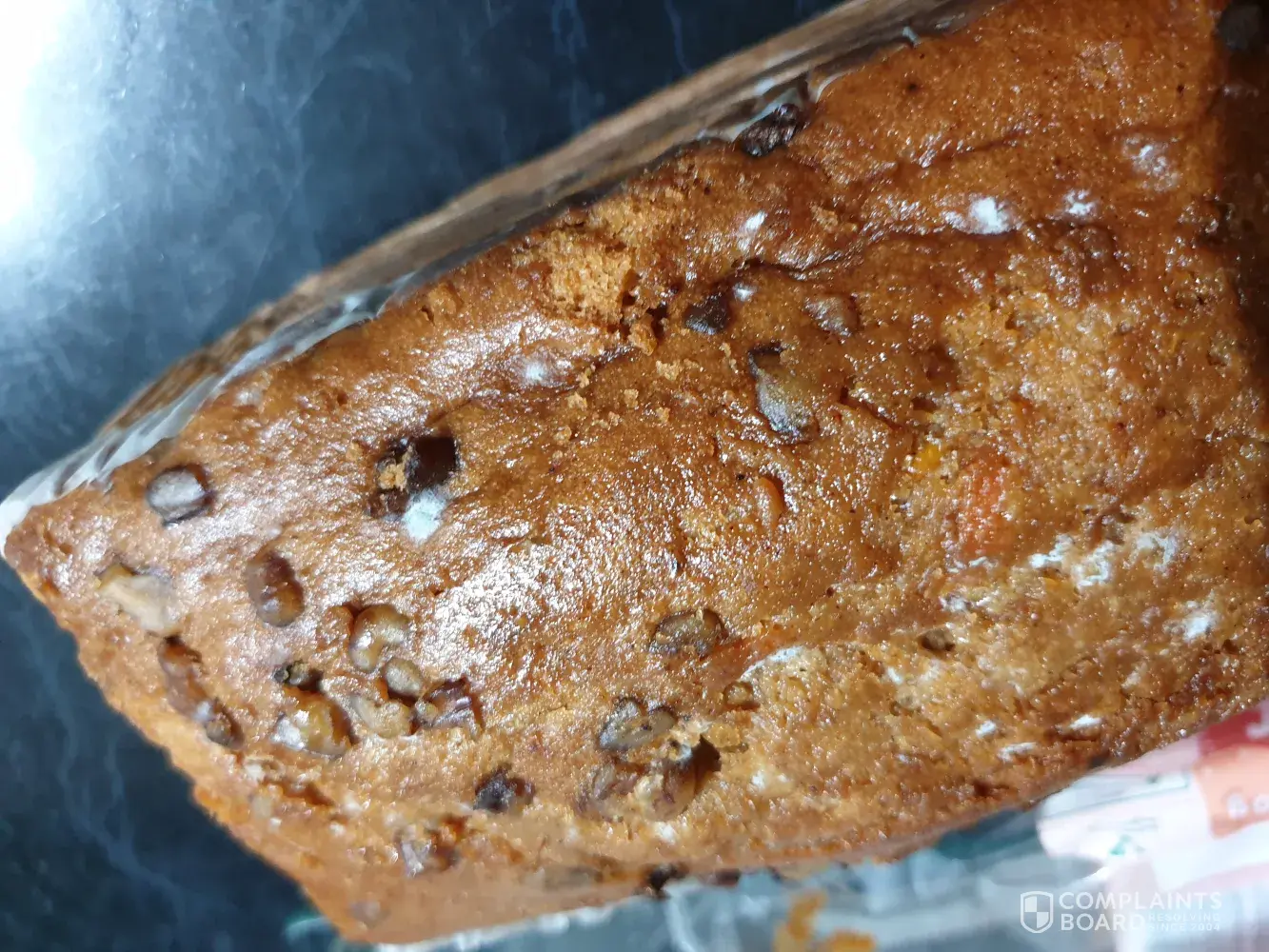 The carrot loaf cake is mouldy. I purchased the carrot loaf cake on today 21/11/2018, the wrapper has use by date 22/11/2018. I have attached a photo of my docket as proof of purchase and a photo of the mouldy carrot loaf cake. As I live some distance from the store where I purchased the cake I am unable to return it for a refund. On a couple of other occasions I have had mouldy cheese purchased from this store, there seems to be a problem with rotation at this particular store.