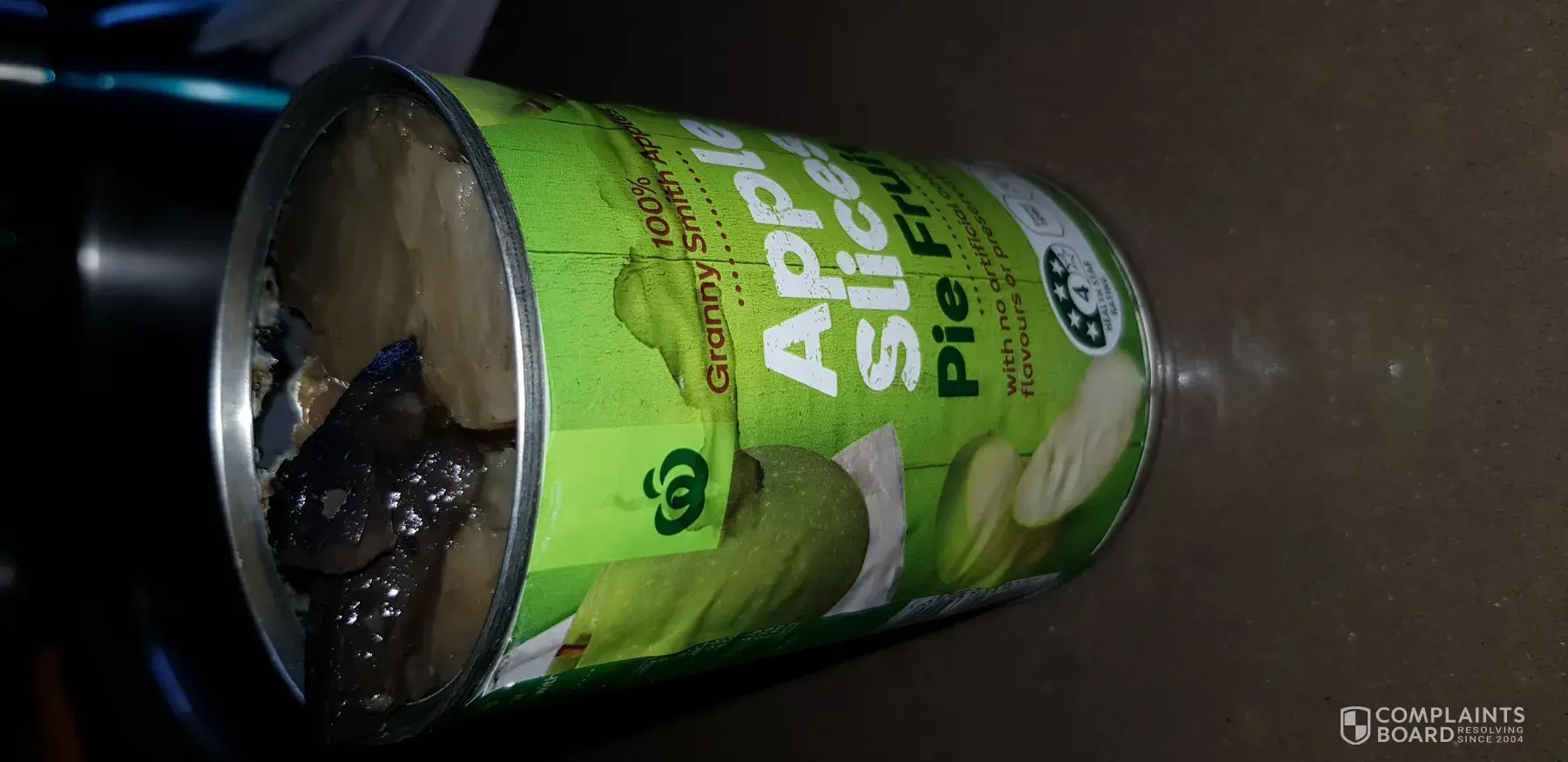 When I opened the can of apple slices the fruit looked a grey colour, the fruit was black on the sides. As you can see from the photos.