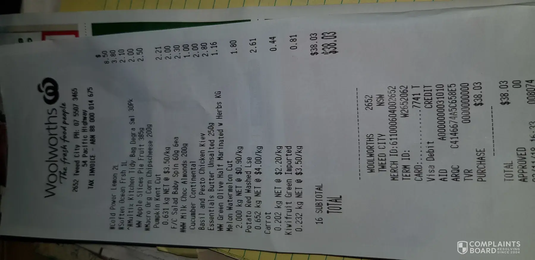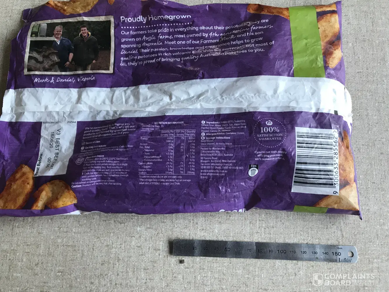 I want to complain about a bad product.I purchased it today at Woolworths, Tweed City, Tweed Heads 2485.