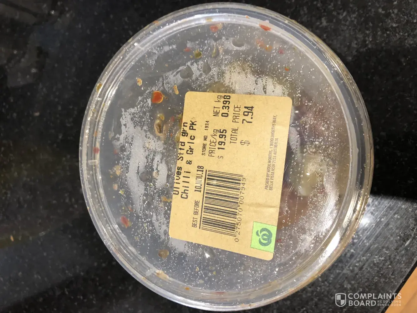 Hi guys, on Saturday 5th November, my Wife did he usual shop at Woolies, Mortdale, NSW. As usual, she bought a tub of "Olives Sttd grn Chilli & Garlic Pk". Unfortunately. it is not uncommon to discover, to your shock and pain, that some Olives are not unseeded, in these packs. Such was the case when I bit into one, last Thursday, where one of my Incisors was chipped and the filling next to it fell out. I have just been to the Dentist tonight and been charged $260, for the repair.