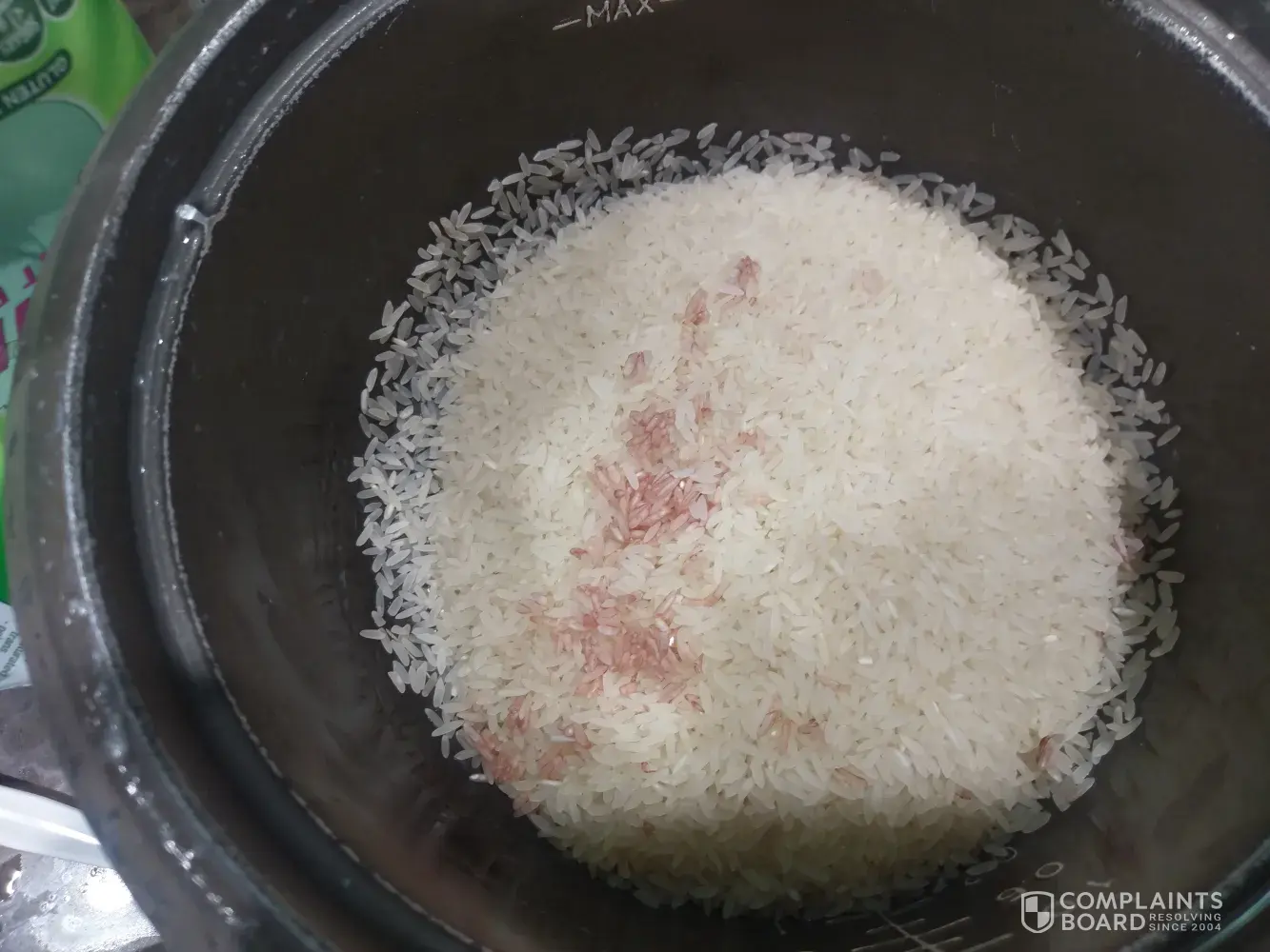 I have used the most of this pack. Tonight while taking some rice into the rice cooker I found some rice are sticking together and turned pinkish red colour, then I found more pink sticky rice inside sticking with packet.
