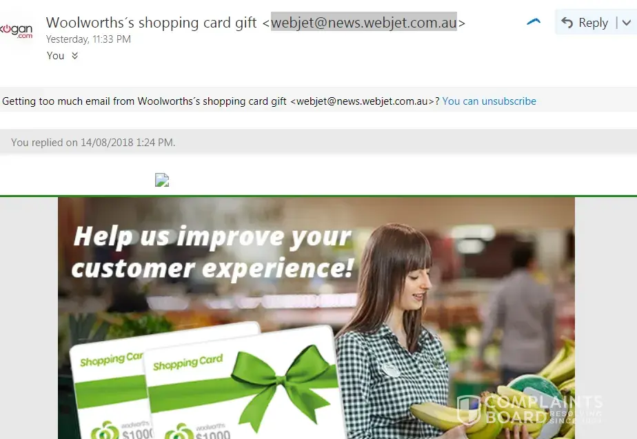 I’m unable to unsubscribe, unable to access any complaint process on the Woolworths Rewards site.
