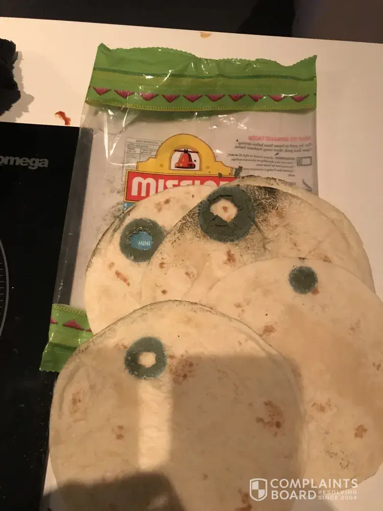 I purchased the above product yesterday (march 6th) at your woolworths store in wooloomooloo. When I took it home to cook last nights dinner I opened the packed to discover approximately 6 of the 10 tortillas were covered in mould.