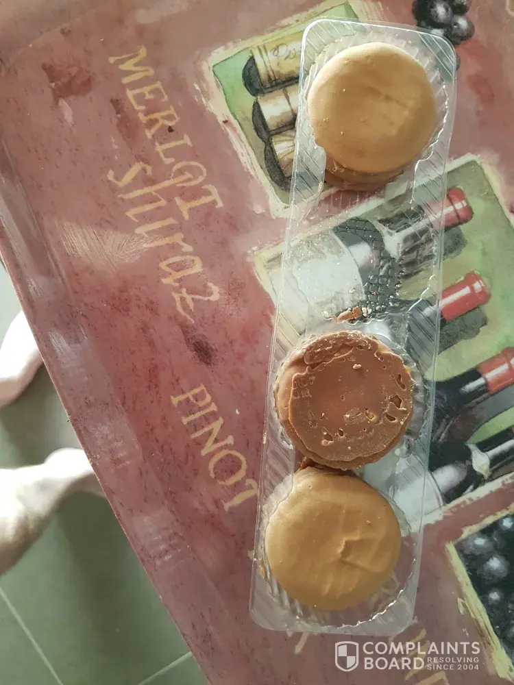I bought a packet yesterday when I opened them they where discoloration on them all stuck together, obviously left in the sun then put in fridge, they were horrible, I'd put money every packet on the shelve was the same, may have only cost $1, 65 Not the point the product should be suitable for consumption theses were clearly not, plus your complaints procedures are a nightmare obviously to put people off complaining, well never worked with me.