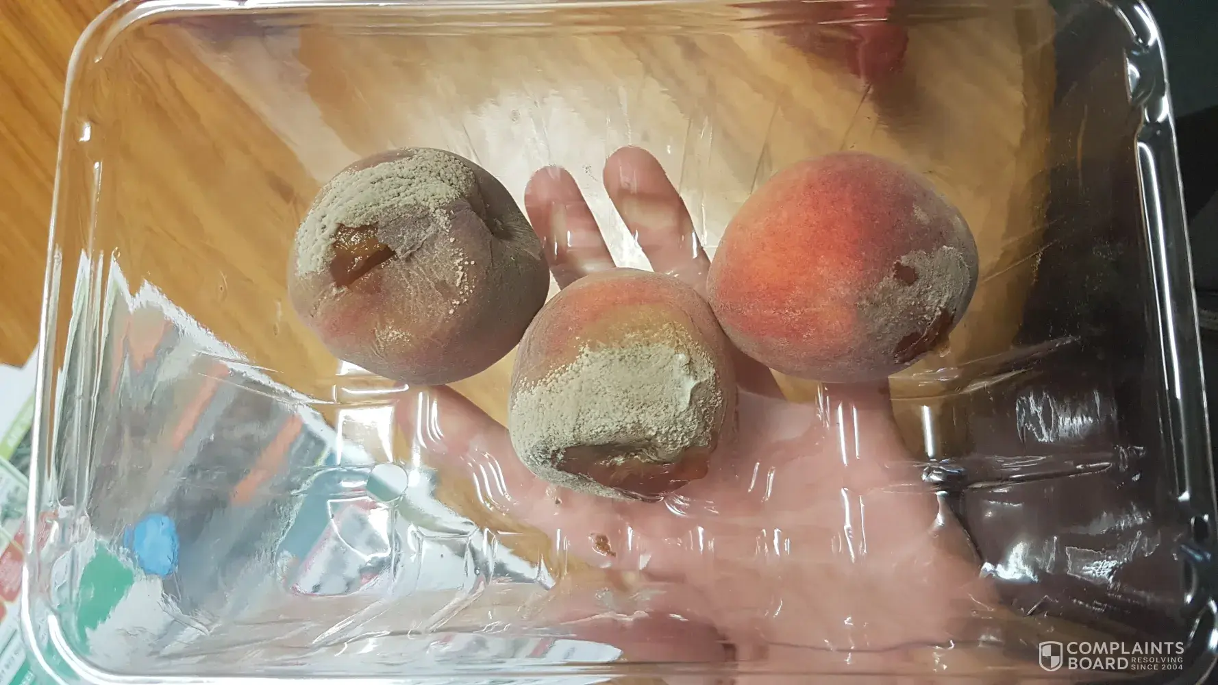 We bought yellow peaches yesterday from woolworths online and when I went to eat one today they are grey, rotting and very mouldy. This is not a reasonable time period for the amount of mould they have acquired. This happens on a semi-regualr basis but I don't know who to talk to. Our local Woolworths won't take responsibility because it is Woolworths online and they don't online shopping.