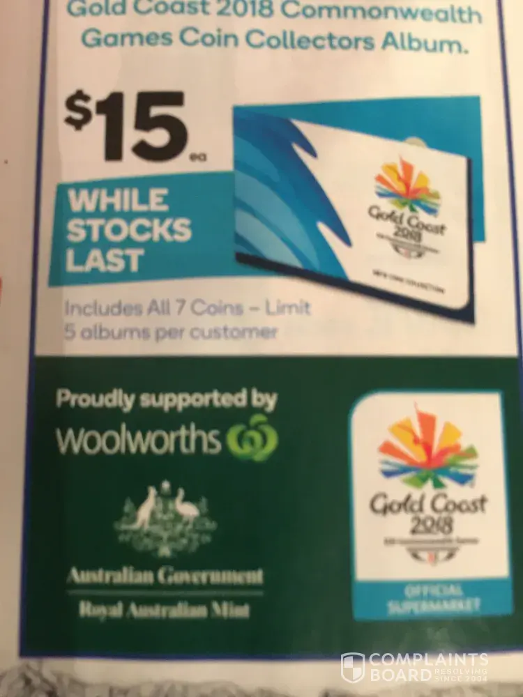 It's very frustrating after my third attempt to woolworths rowville (twice today as they couldn't find them this morning) to purchase 5 sets of commonwealth games coin set $15, on behalf of my mother for her grandchildren, to be told that I couldn't possibly purchase that many, perhaps 2 at the most!