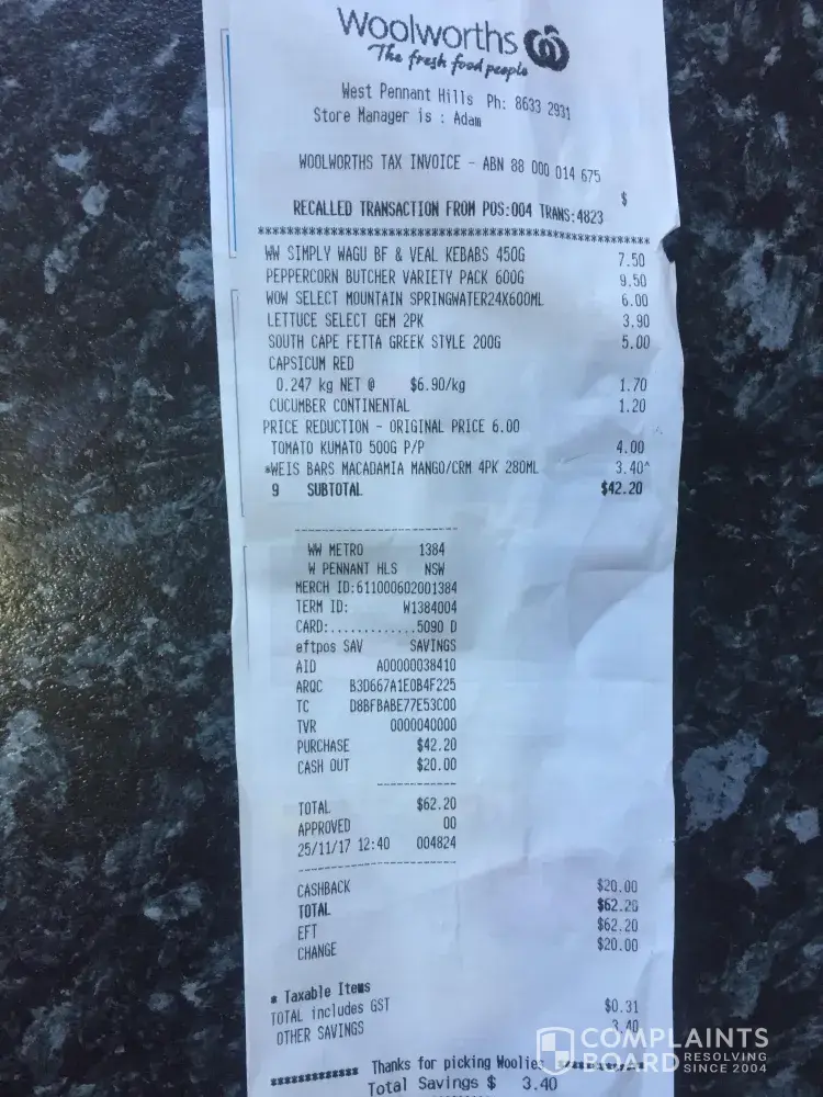 I was promised by the manager he would look into this. He is now on holiday. This crap has gone on for weeks now. I think my attorney will take care of natasha and woolworths shortly