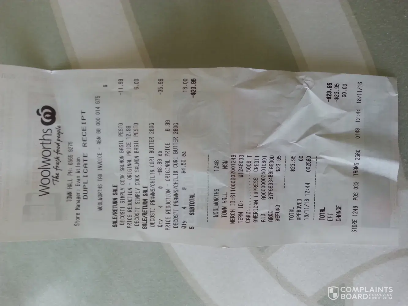 Monday 21/11/2016 I received an email from Woolworths Online stating that the coupon had been cancelled and I would receive my refund within 3-5 business days, thinking this email must have been a mistake I did not contact Woolworths straight away.