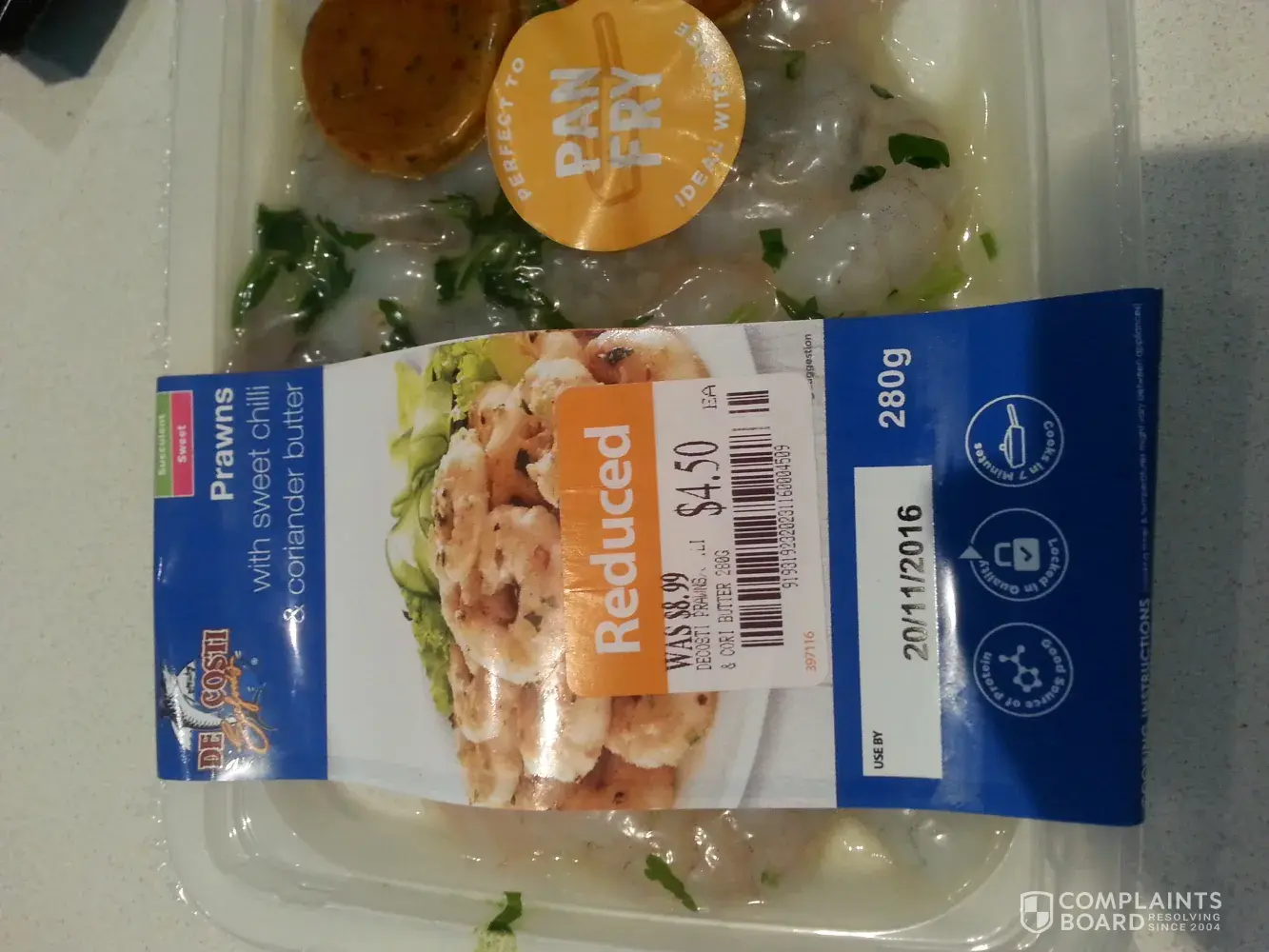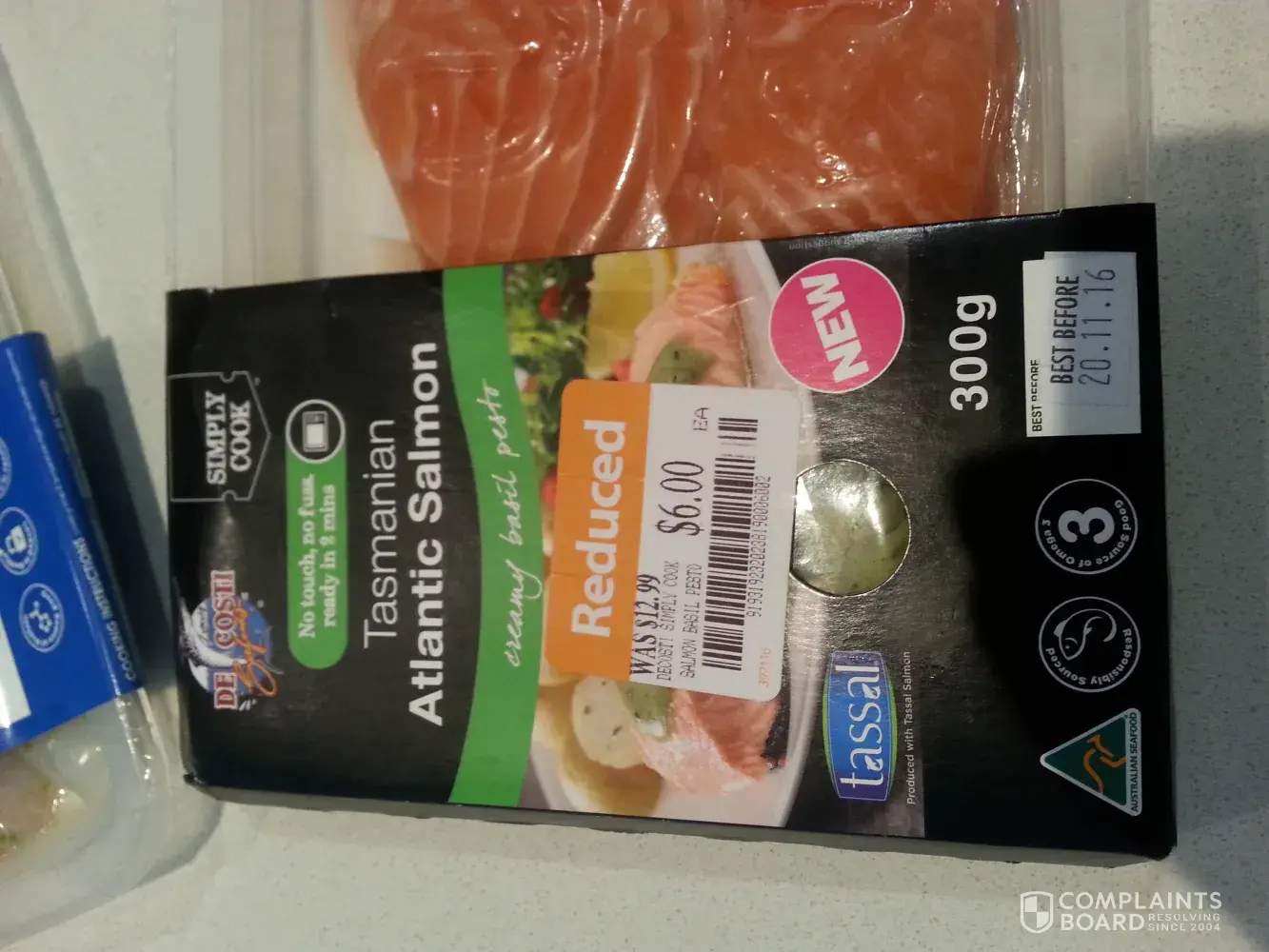 Purchased 4 no. Prawns $8.99 reduced to $4.50 and 1 no. Salmon $12.00 reduced to $6.00 today. Original bar code was covered and we finished up paying full price for all products.